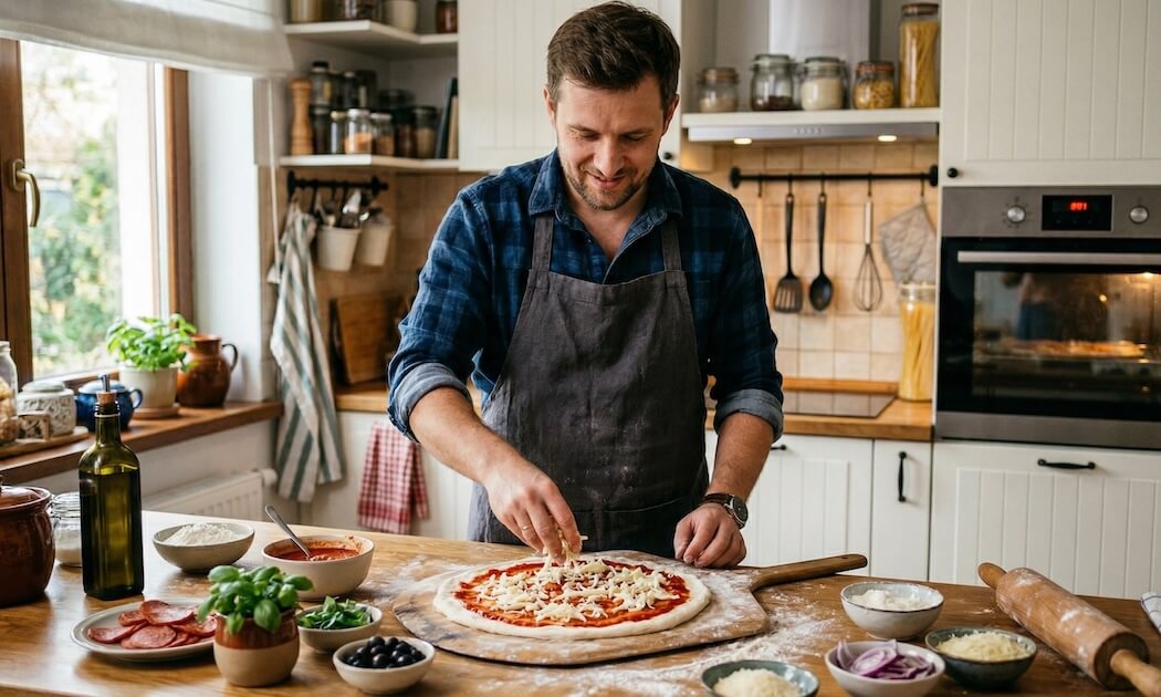 Pieczenie pizzy w 180°C wymaga innego podejścia niż w przypadku klasycznej pizzy z pizzerii. Kluczowe znaczenie ma ustawienie piekarnika na tryb góra–dół lub termoobieg oraz pieczenie przez 18 do 30 minut, zależnie od grubości ciasta i ilości dodatków.